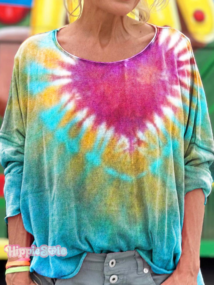 Women's Casual Hippie Art Print V Neck Long Sleeve Tops