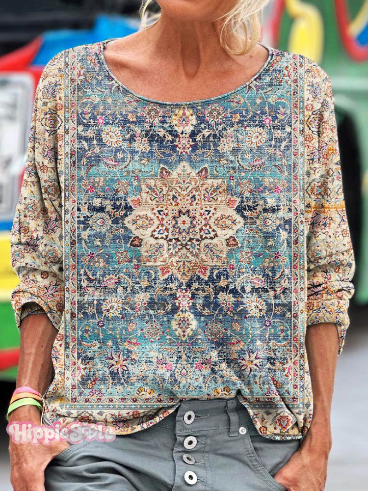 Vintage Ethnic Style Embellished Pattern Art Print Casual Long Sleeve T-Shirt