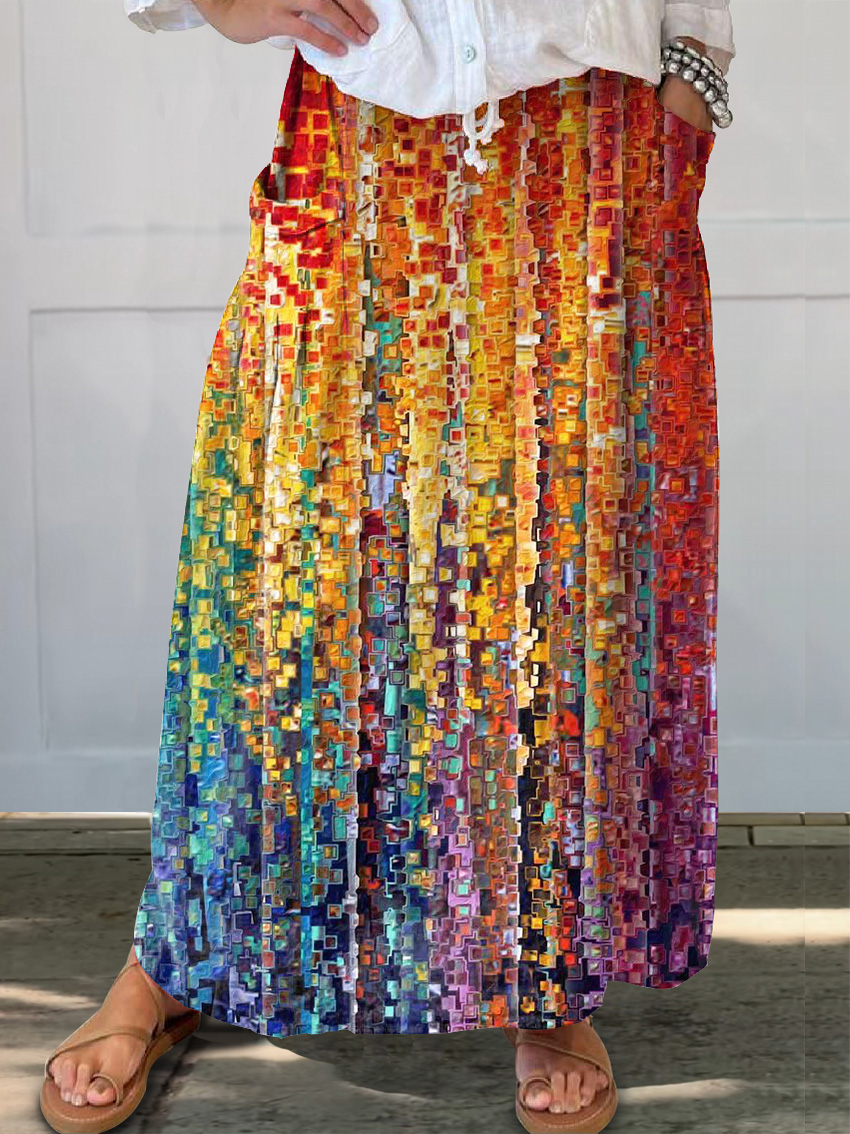 Women's Colorful Gradient Texture Art Print Linen Pocket Skirt