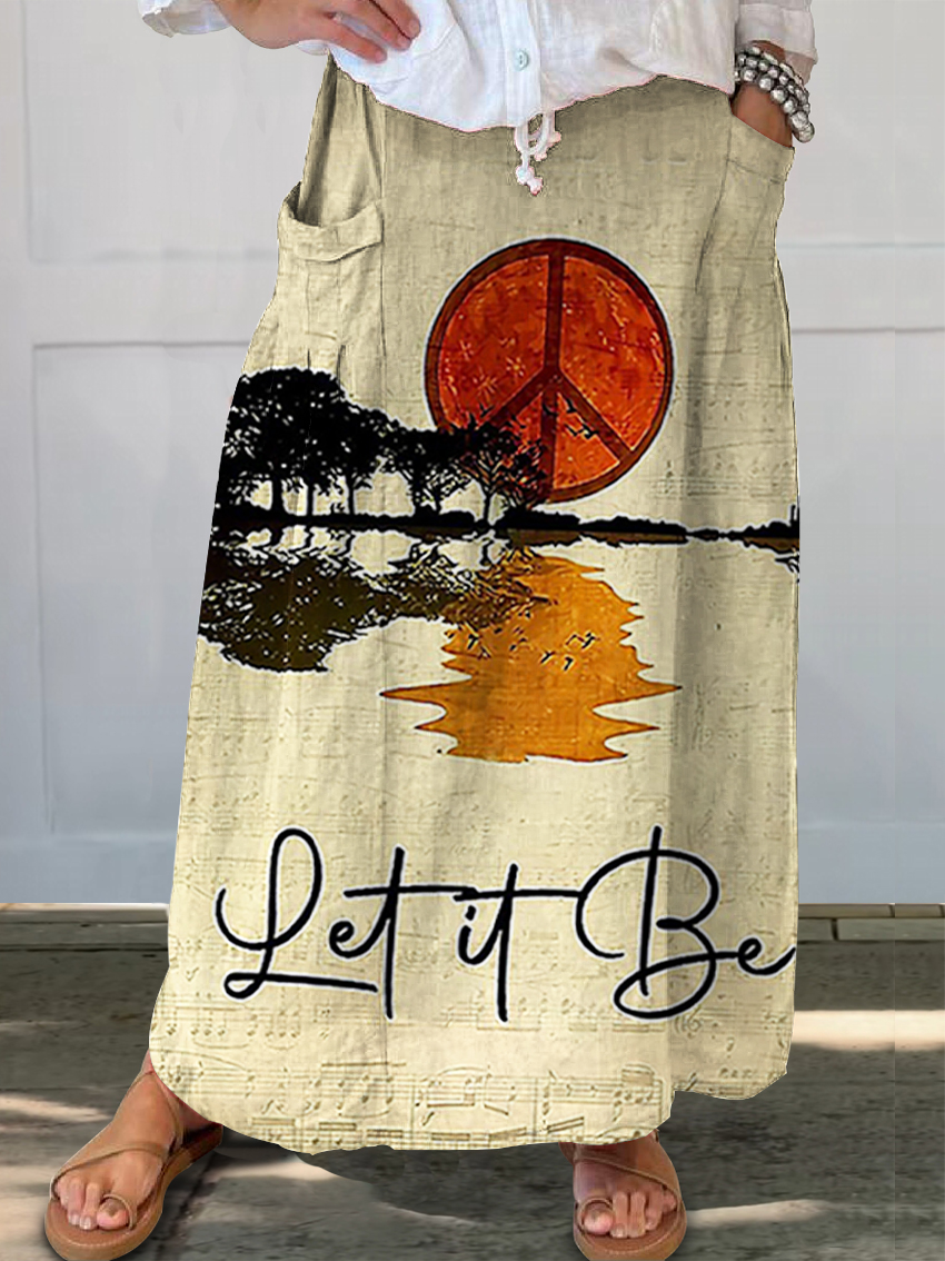 Women's Hippie Whisper Words Of Wisdom Print Linen Pocket Skirt