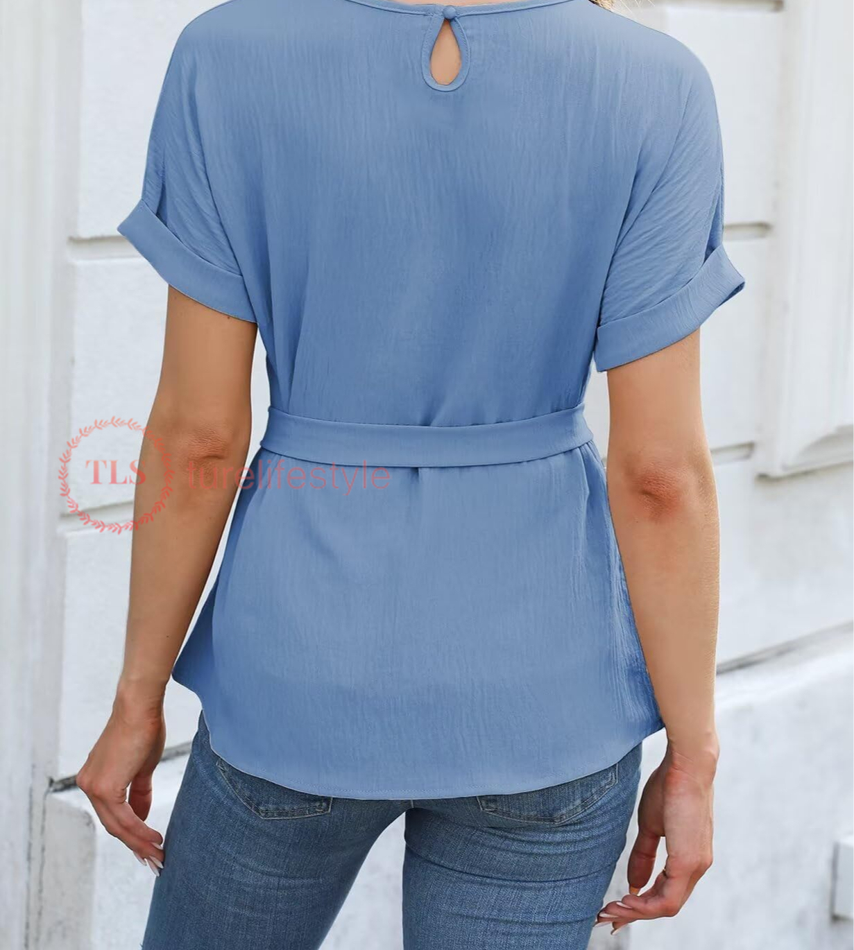 Casual Shirt Ruffle Pleated Round Neck Short-sleeved Top Fashion Women