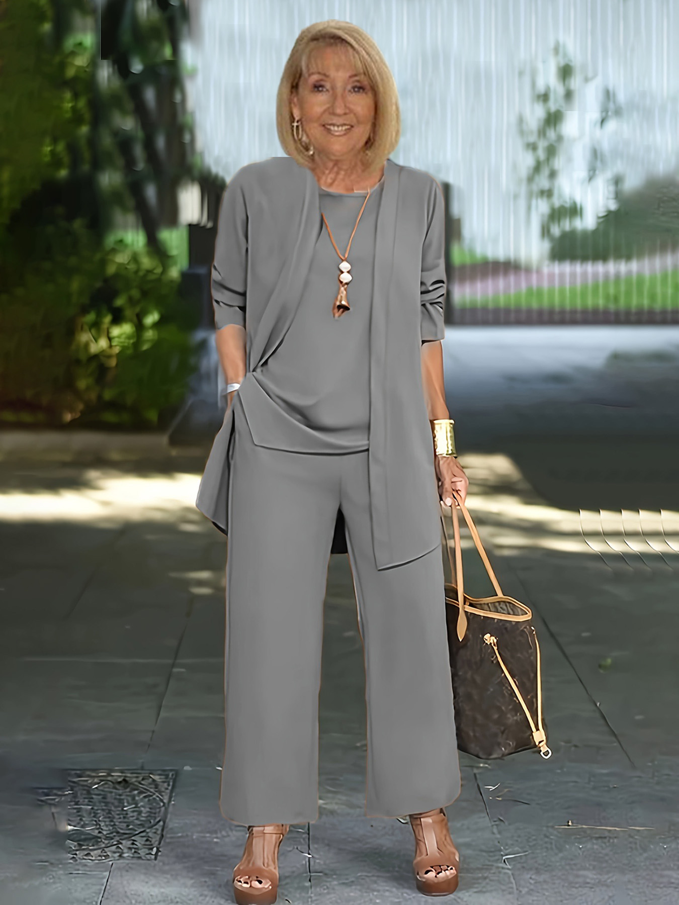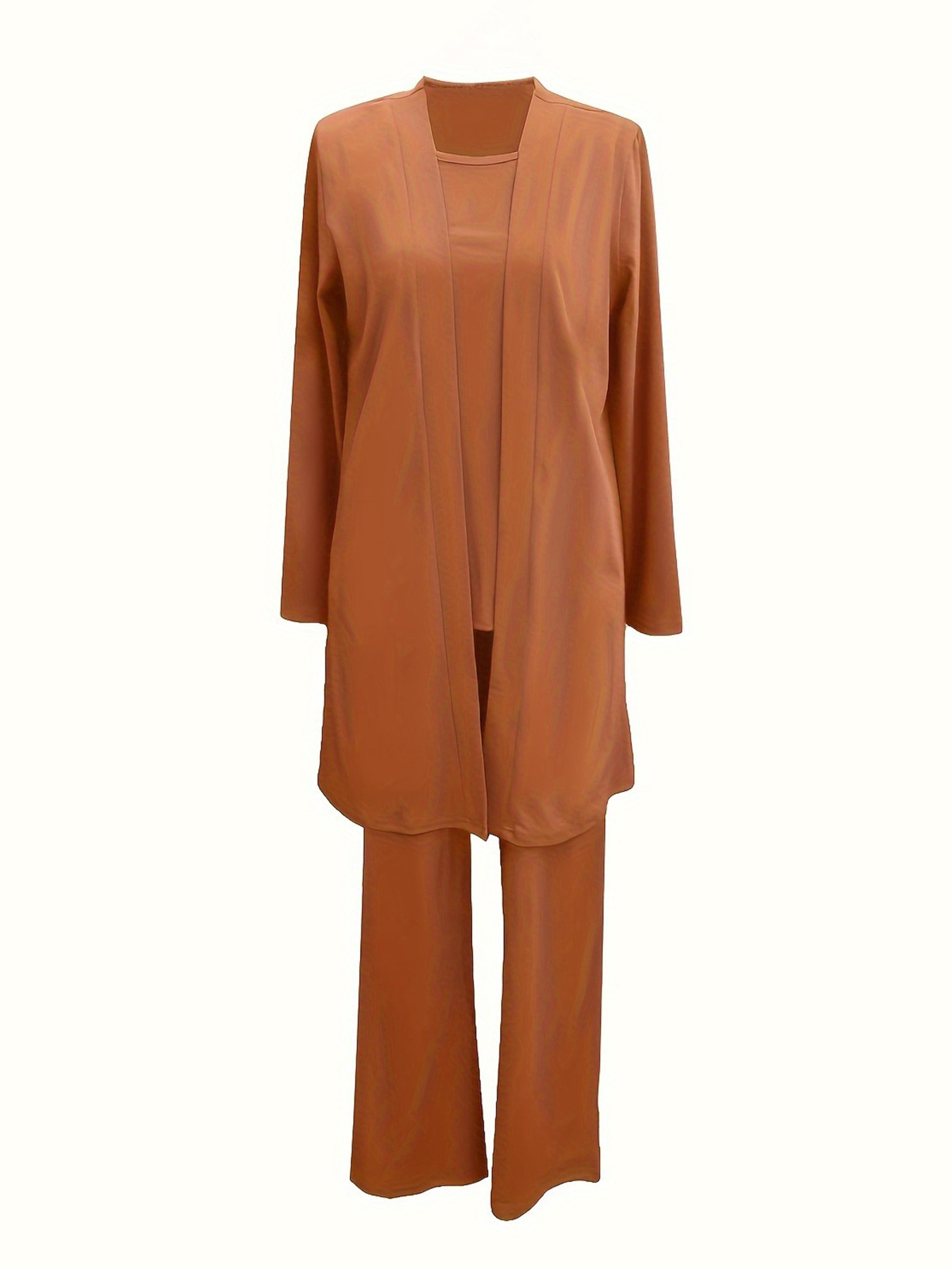Casual Three-piece Solid Set, Long Sleeve Cardigan & Top & Long Pants Outfits, Women's Clothing