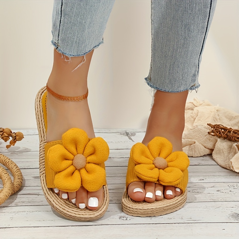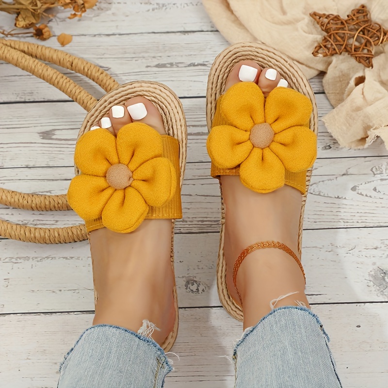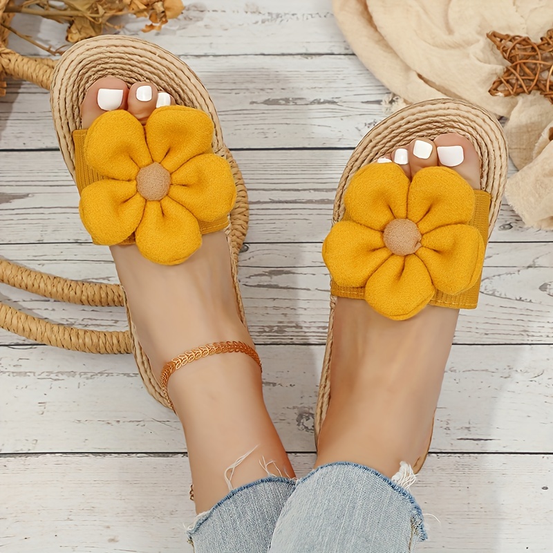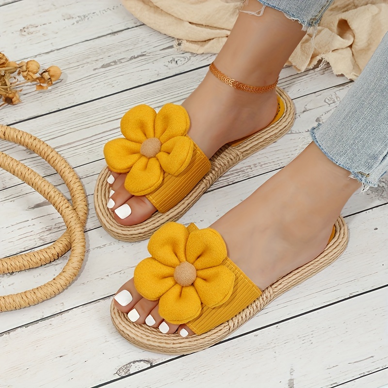 Elegant Summer Breeze Floral Sandals for Women: Comfy Slip-On, Open Toe Strappy Slides with Lightweight Straw Sole