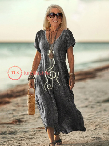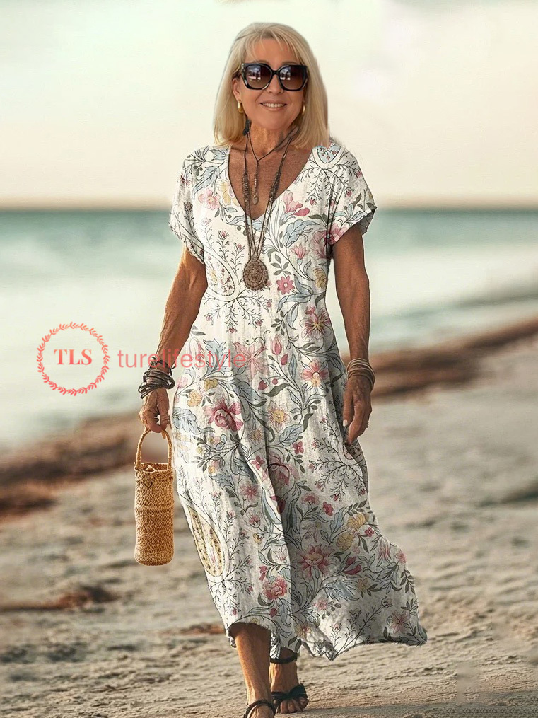 Women Floral V Neck Short Sleeve Comfy Casual Printing Maxi Dress