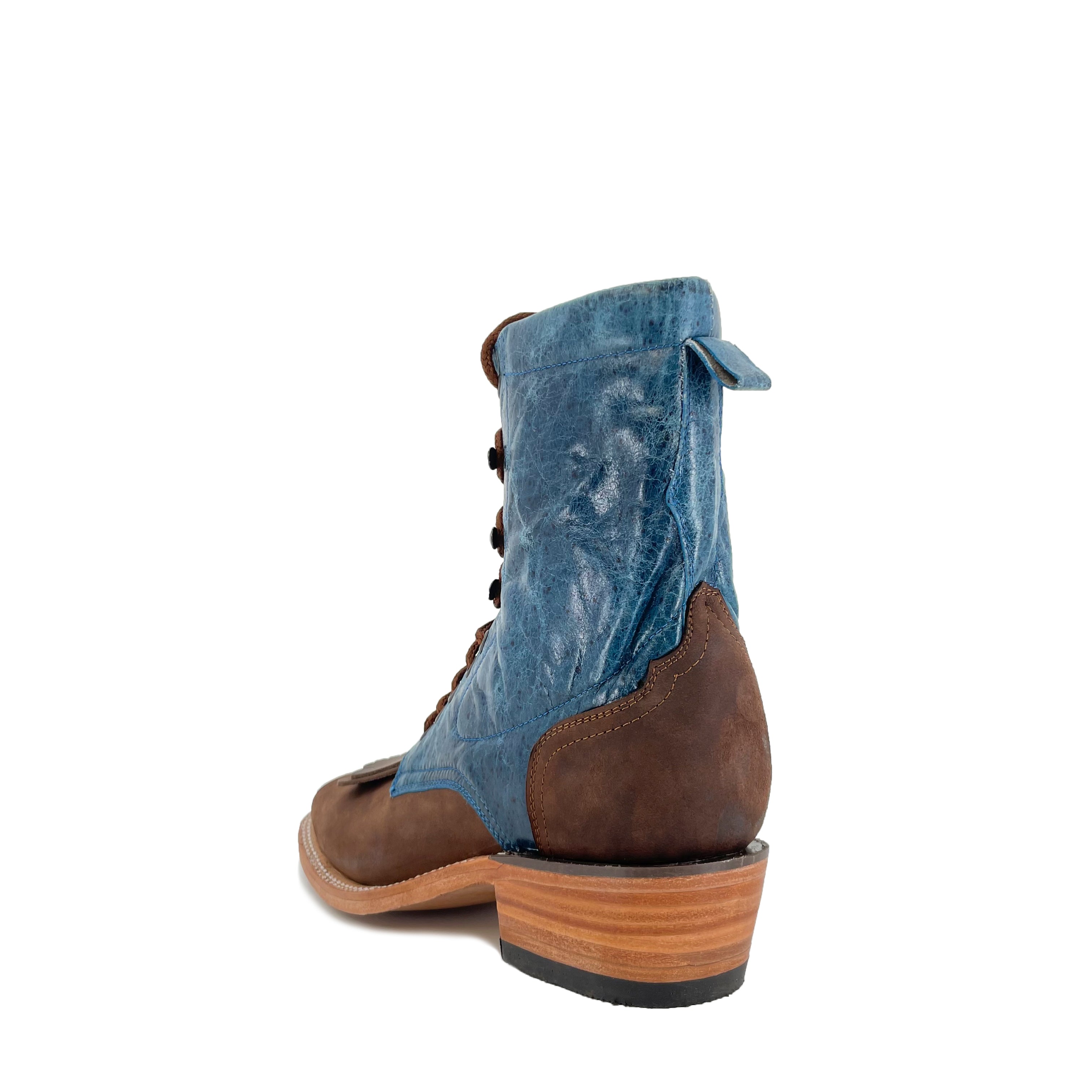 Lace Up Western Men's Boots - Dark Brown Vamp with Turquoise Calf