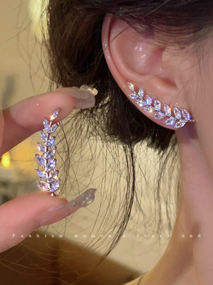Light luxury zircon wheat ear one-piece earrings niche design super flash leaf earrings temperament versatile earrings A pair