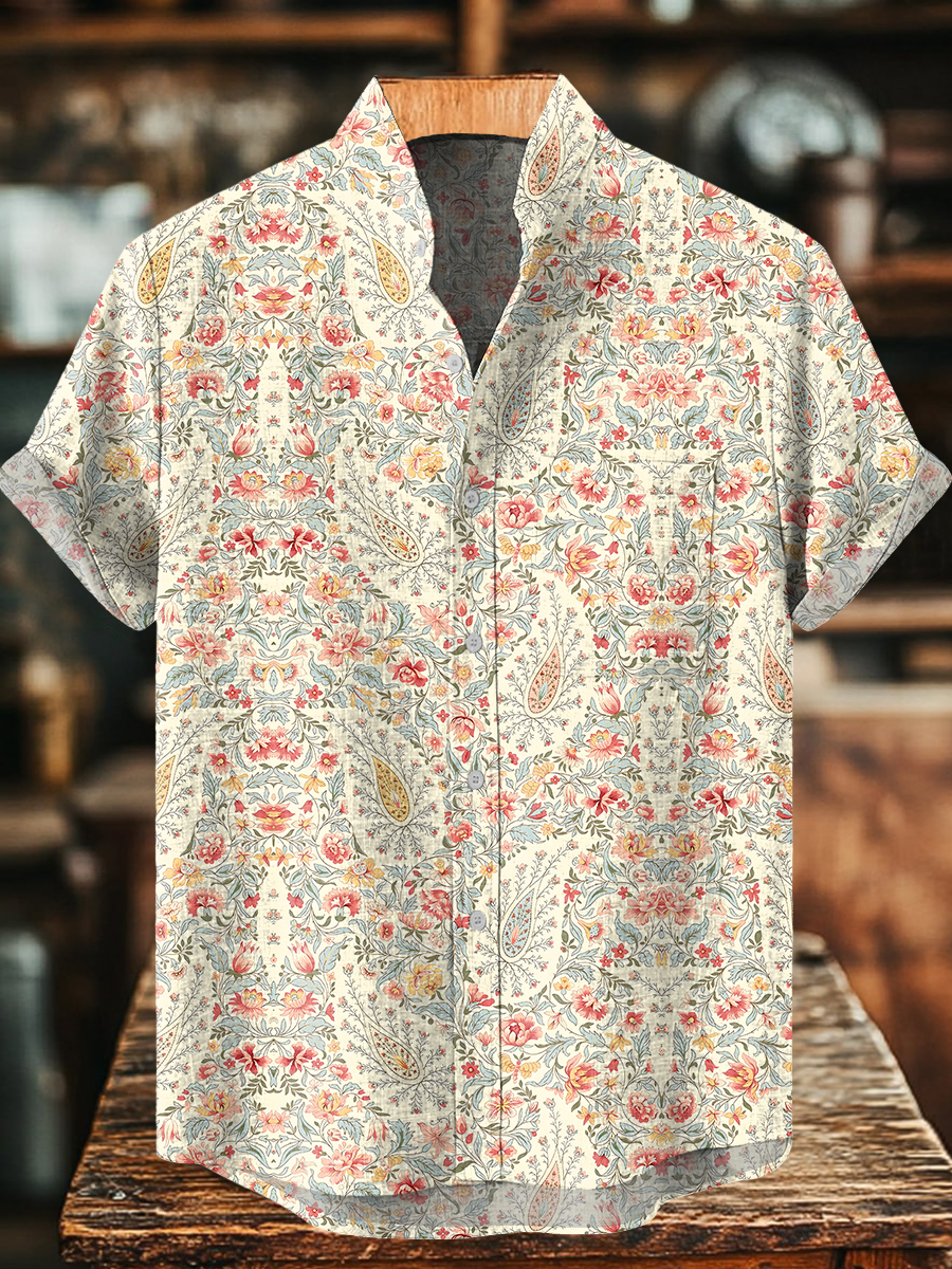 Retro Paisley Floral Art Print Casual 100% Cotton Shirt