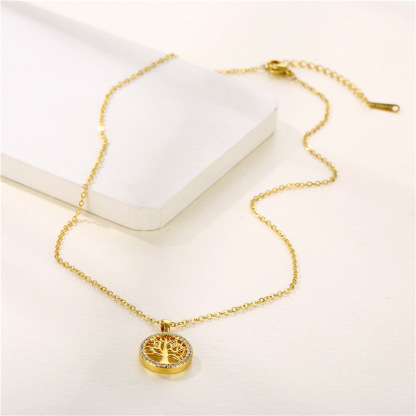 Round Hollow Tree of Life Pendant Necklace Geometric Clavicle Chain