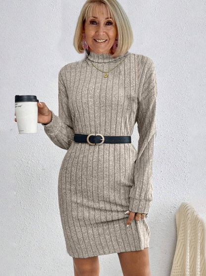 Stylish Turtle Neck Knit Dress - Soft, Elegant, Textured Long Sleeve Design for Spring & Fall, Comfortable Women's Clothing for Everyday Wear