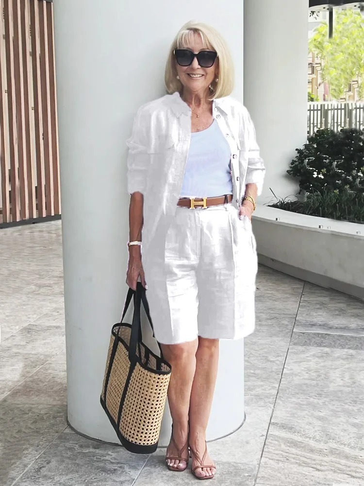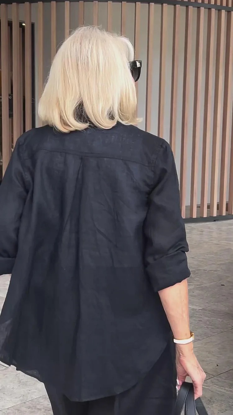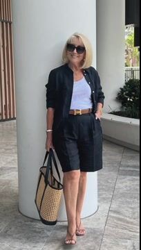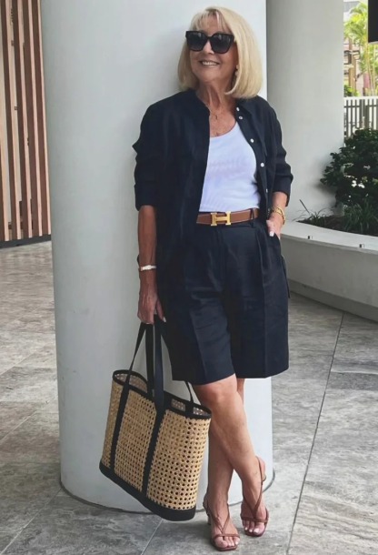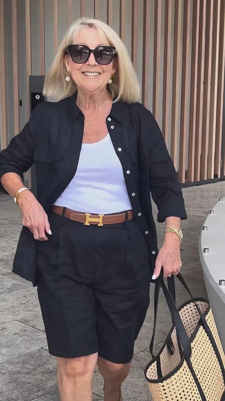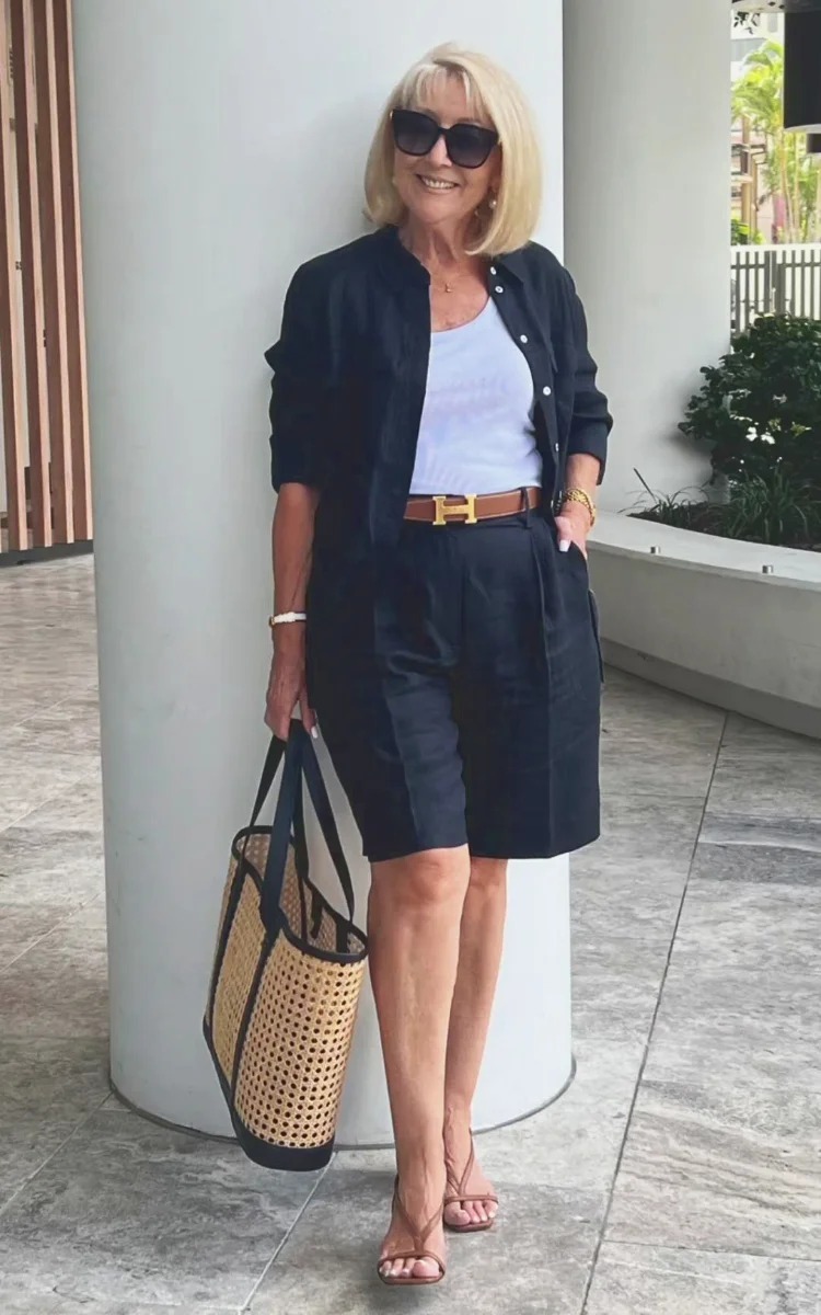 Today, I have chosen my BLACK LINEN SHORTS and have added a matching LINEN SHIRT and TAN ACCESSORIES for a stylish trans-seasonal look.