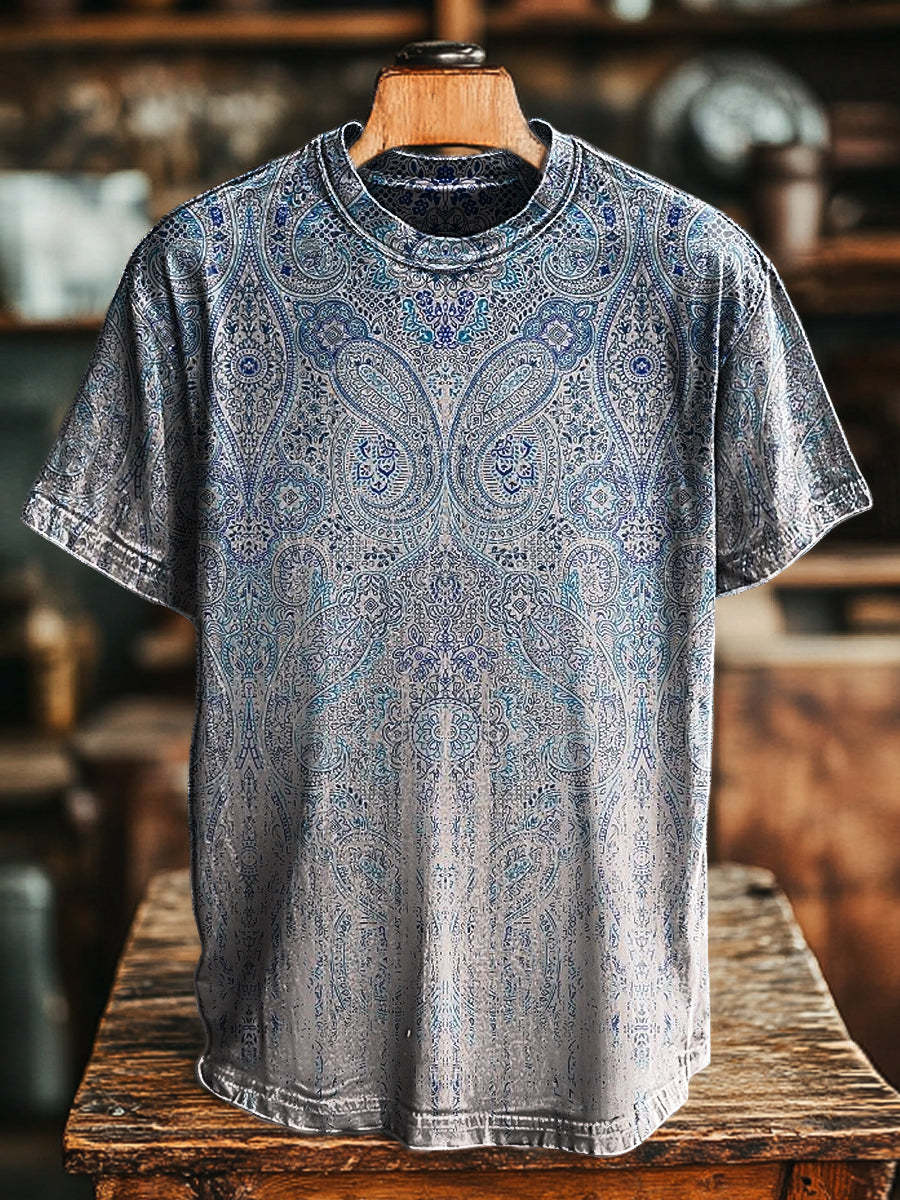 Unisex Retro Gradient Ethnic Flower Print Casual Loose Short Sleeve T-Shirt