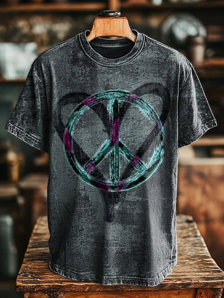 Unisex Vintage Aged Peace And Love Printed Casual Loose T-Shirt