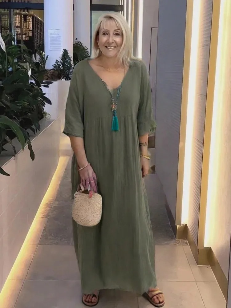 V-neck Irregular Multi-Color Multi-Size Long Large Hem Dress