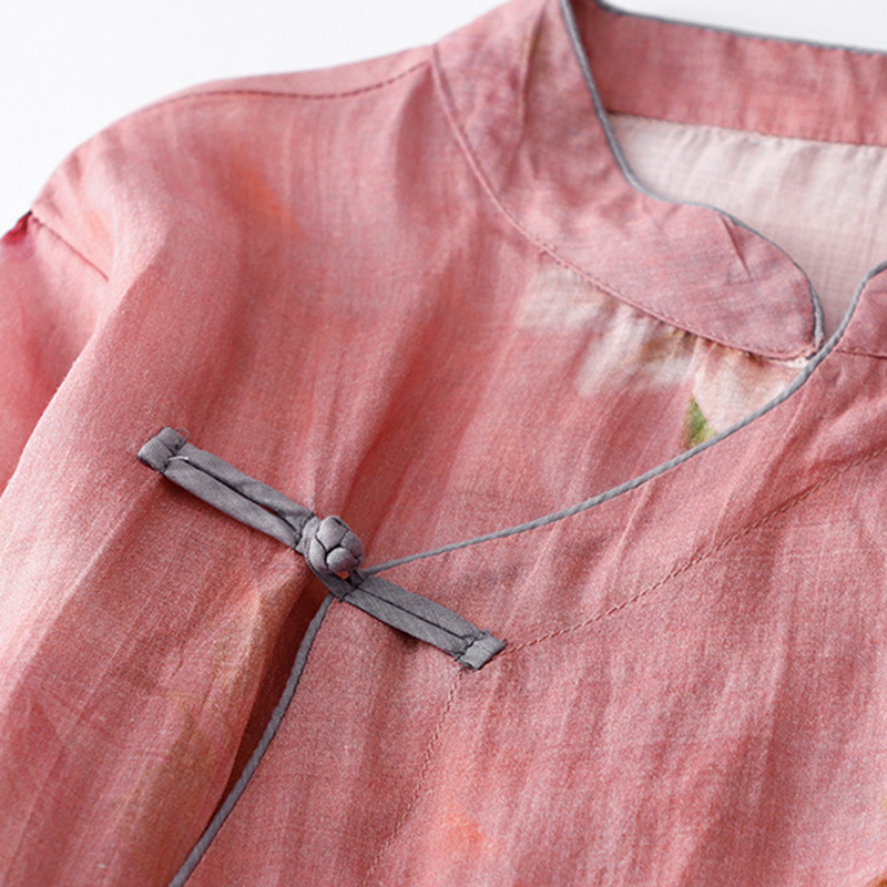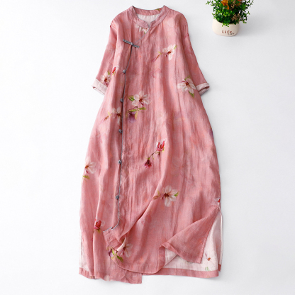 Vintage Japanese Art Floral Cotton Linen Maxi Dress