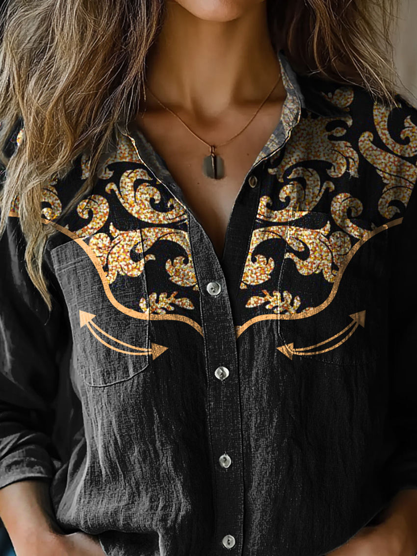 Western Style Glitter Floral Pattern Printed Women's Casual Long Sleeve Comfortable Cotton Shirt