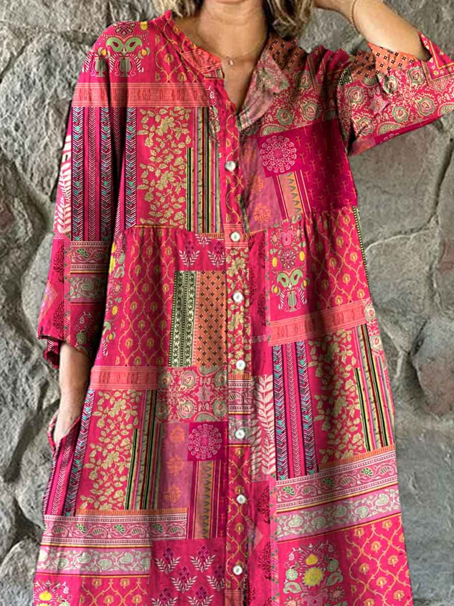 Women's Bohemian Ethnic Geometric Print Cotton And Linen Dress