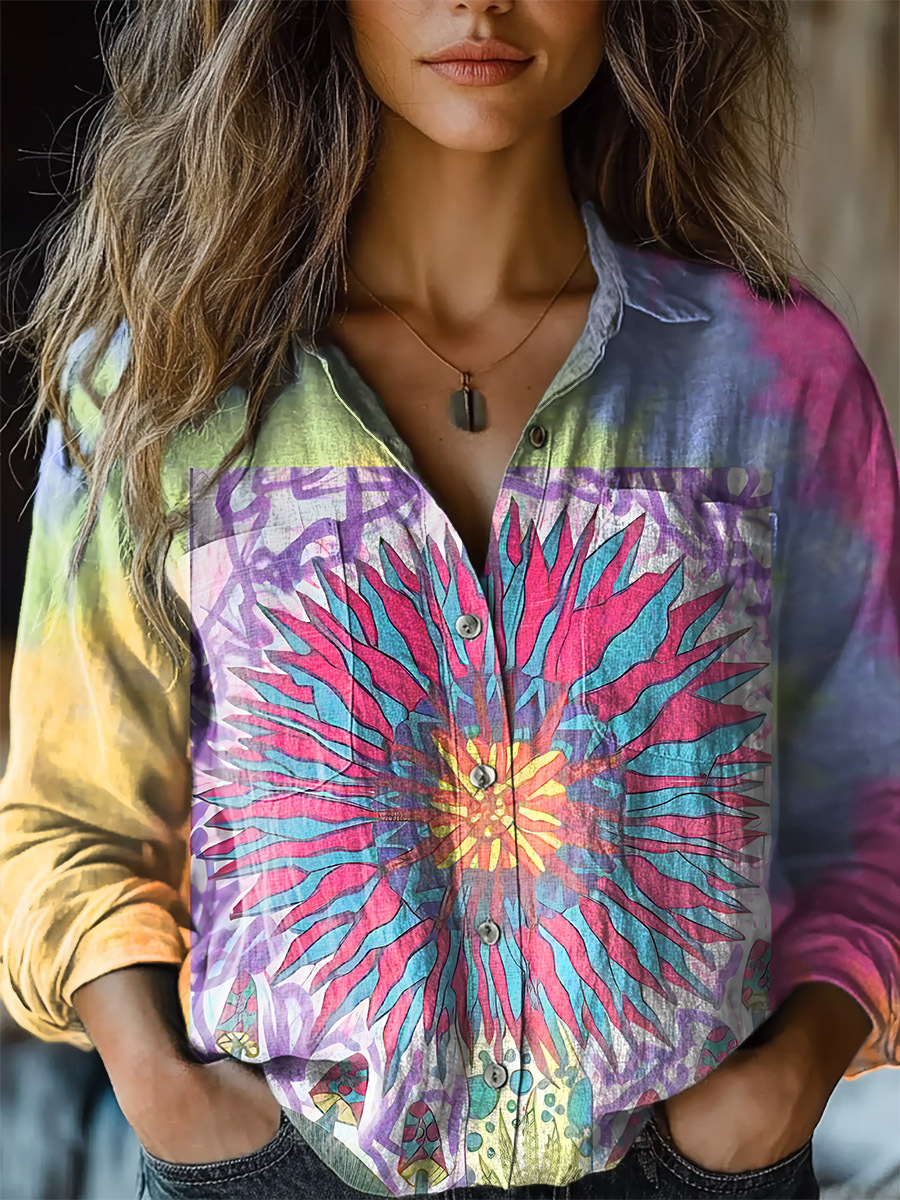 Women's Colorful Tie Dye Print Casual Long Sleeve Comfortable Cotton Shirt