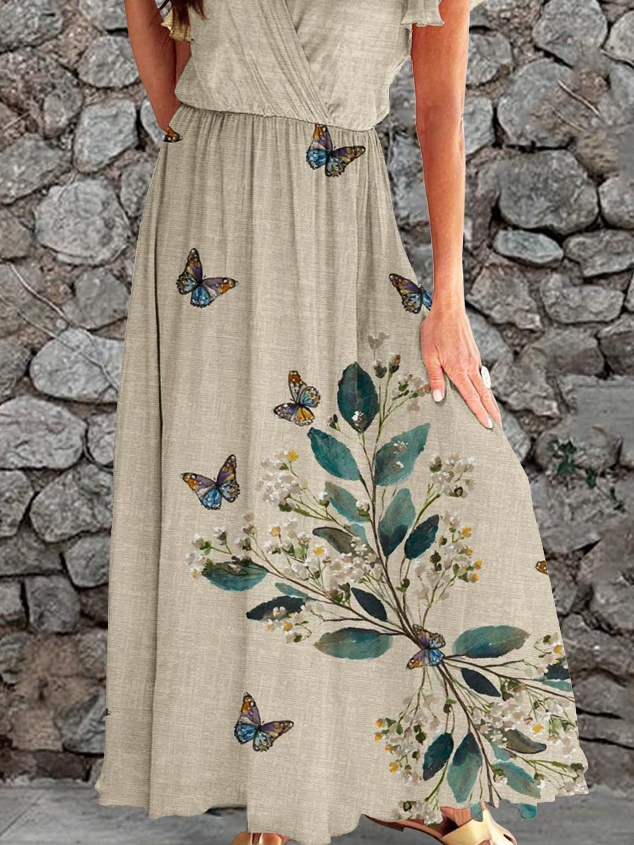 Women's Elegant Vintage Butterfly Pattern Print Dress
