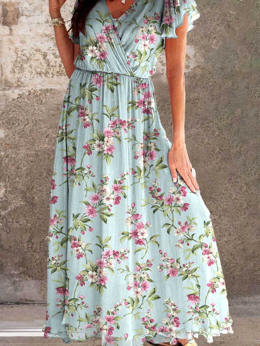 Women's Elegant Vintage Rose Floral Pattern Dress