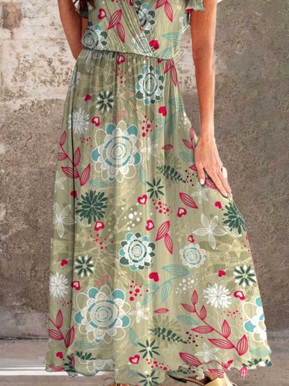 Women's Elegant Vintage Rose Floral Pattern Dress