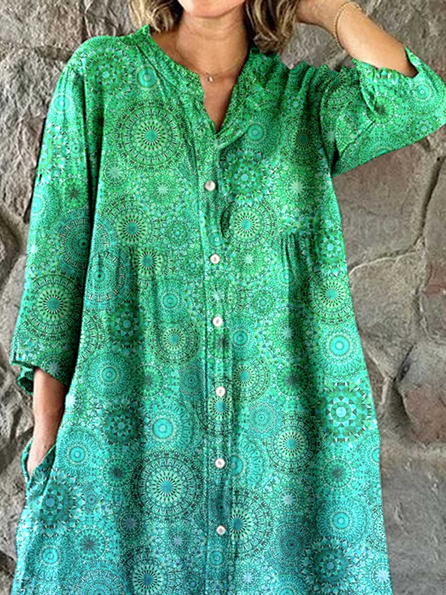 Women's Gradient Floral PatternCotton Shirt Dress