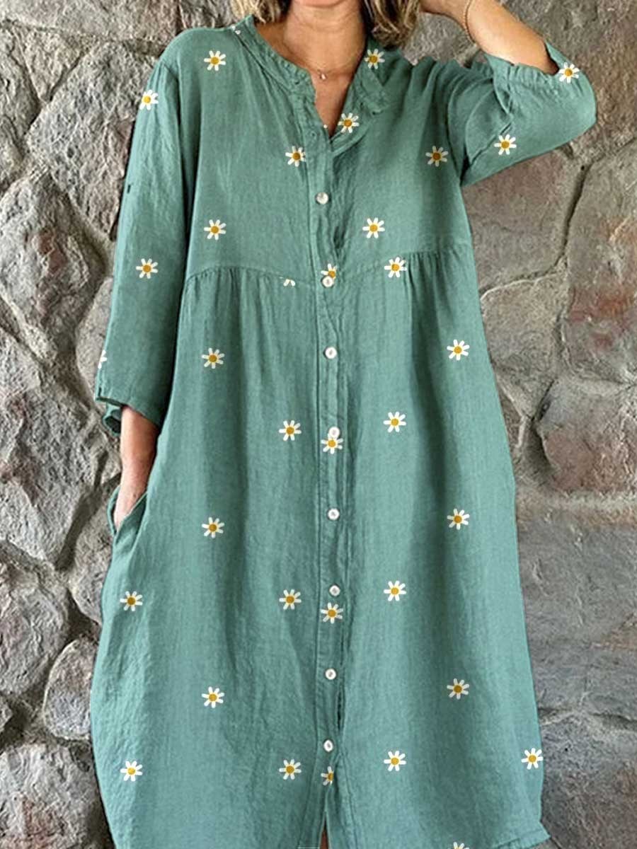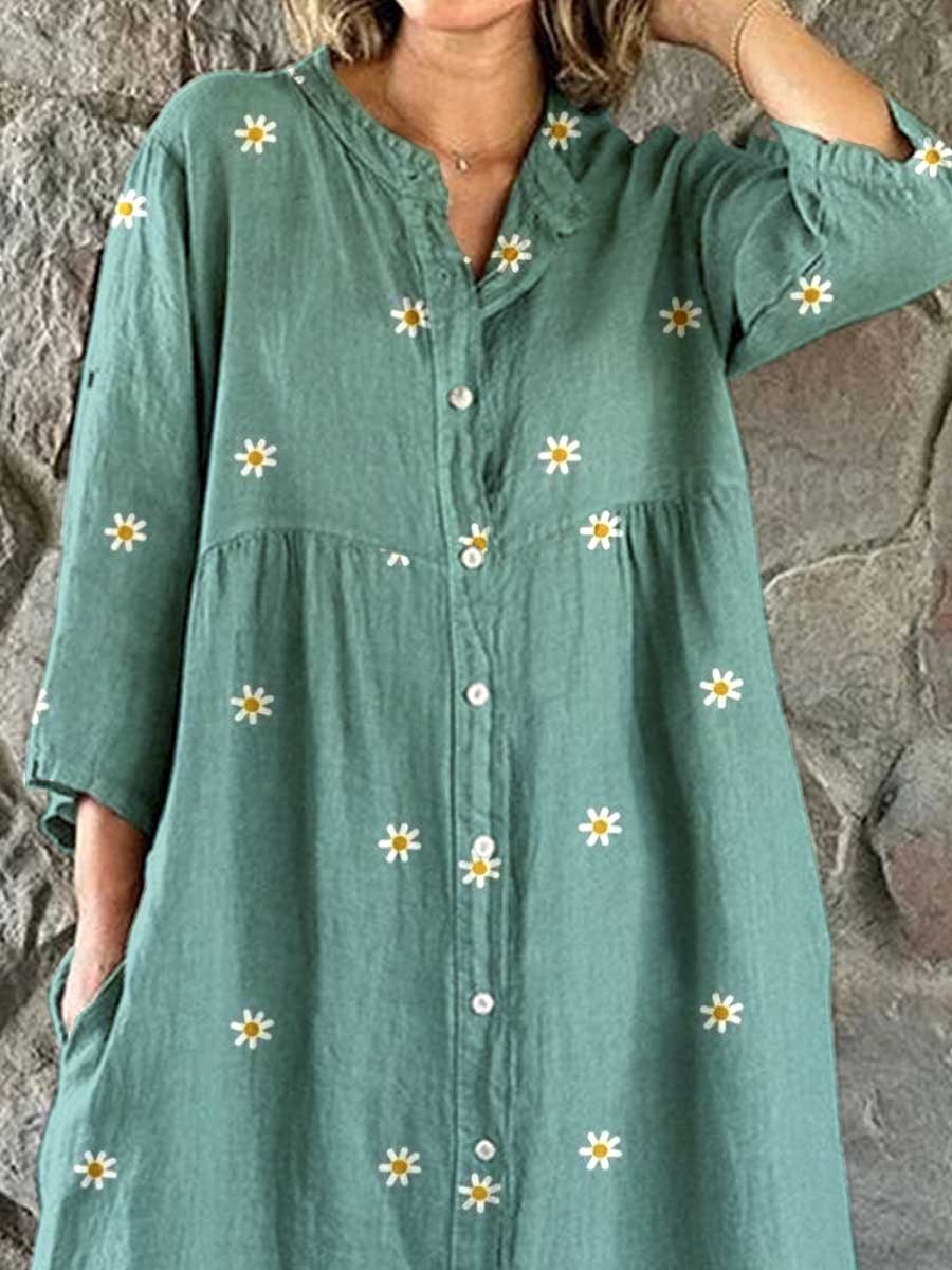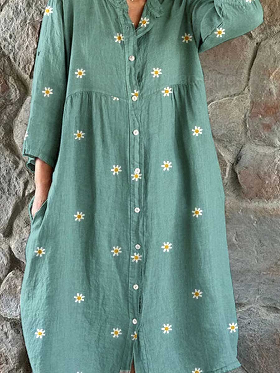 Women's Resort Art Daisy Floral Pattern Cotton Shirt Dress