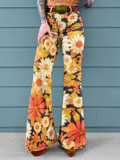 Women's Vintage 60s Floral Pattern Print Casual Wide Leg Pants