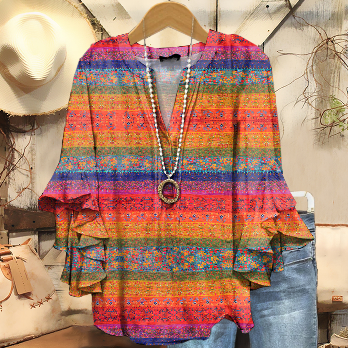 Women's Vintage Floral Art Print Casual Cotton And Linen Shirt