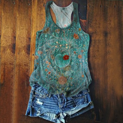 Women's Vintage Floral Art Print V-neck Casual T-Shirt-1