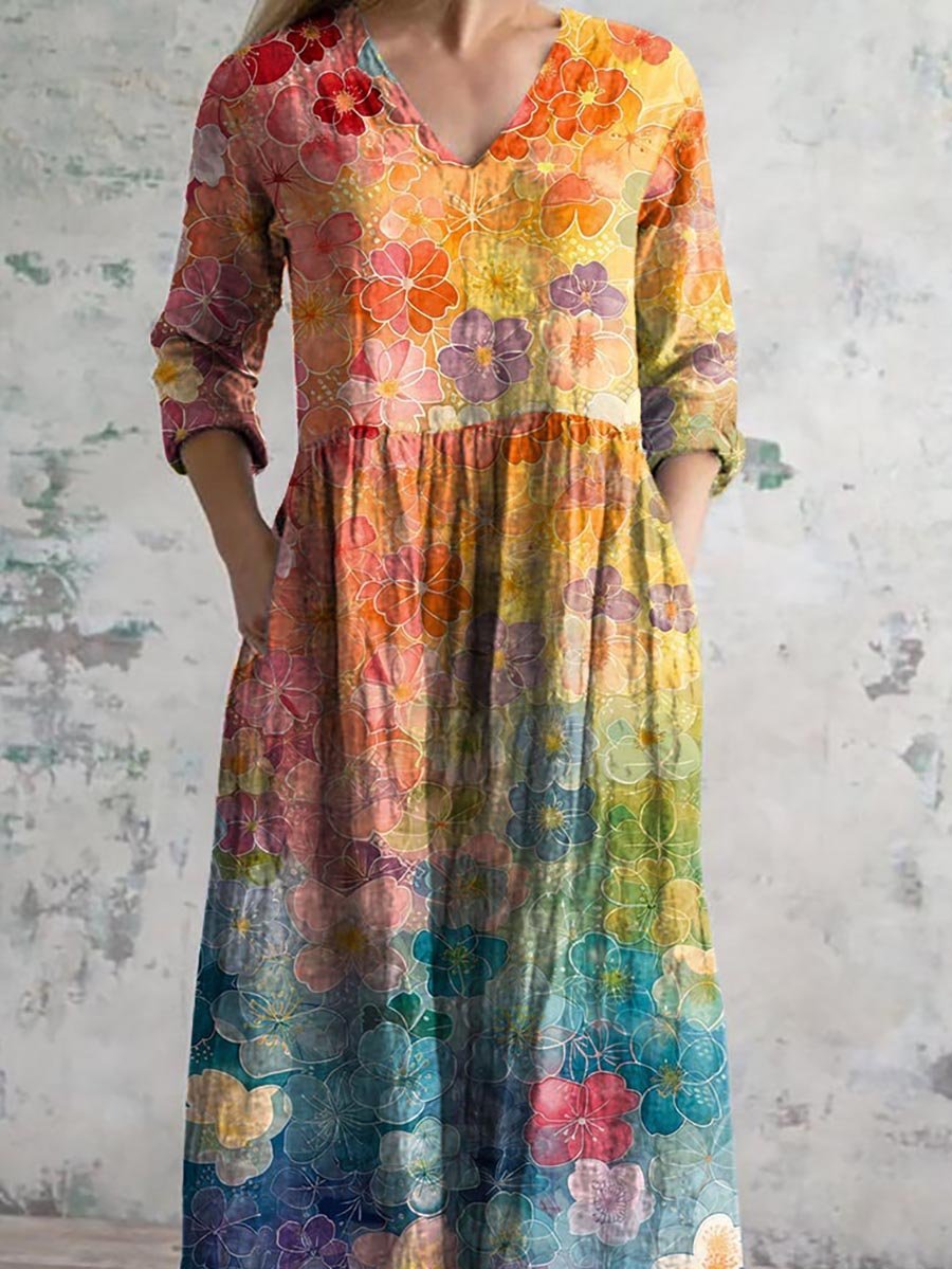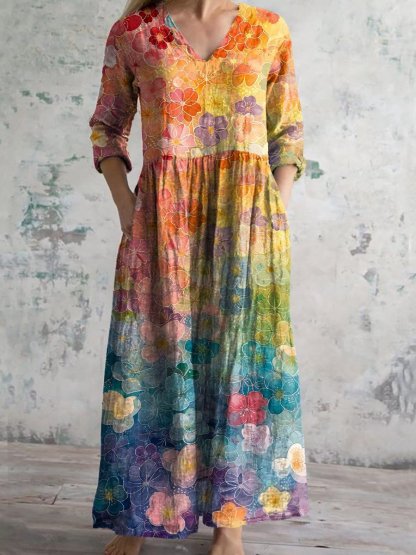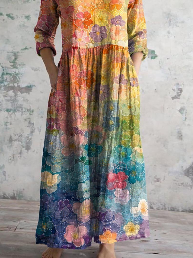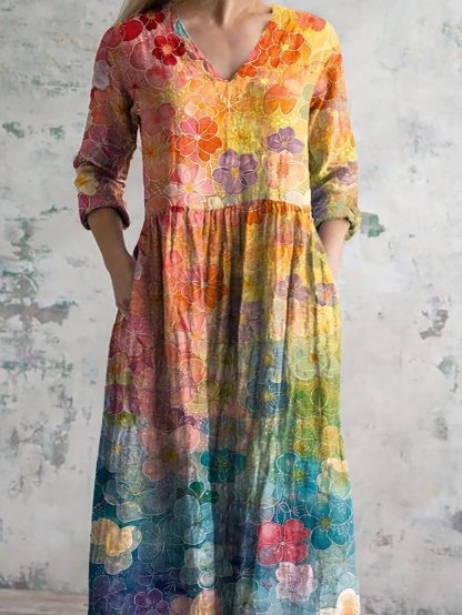 Women's Vintage Floral Print Casual Cotton Dress
