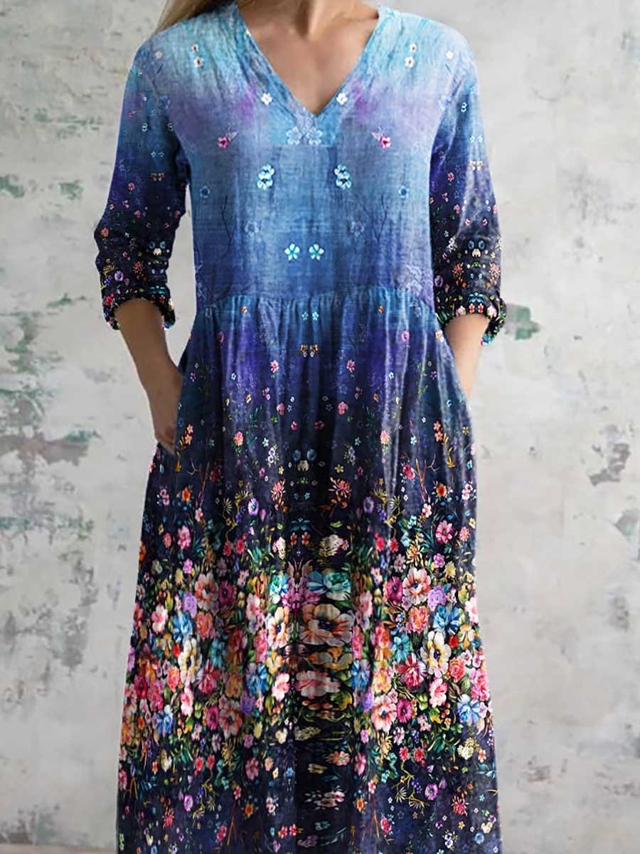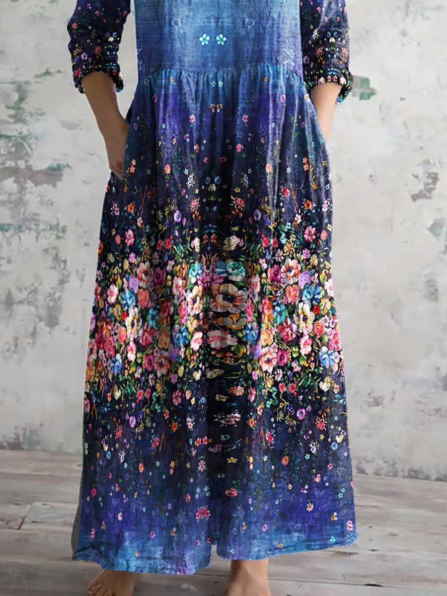 Women's Vintage Floral Print Casual Cotton Dress